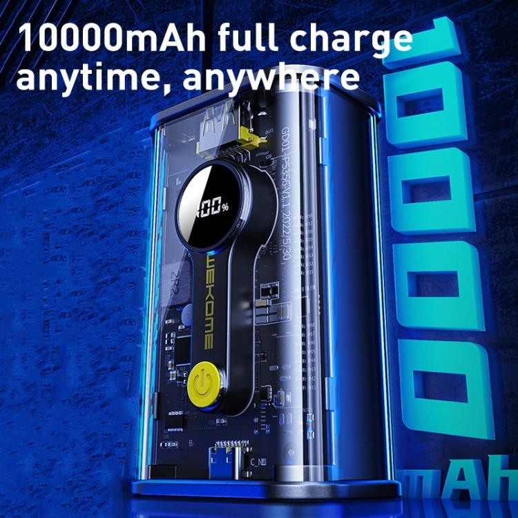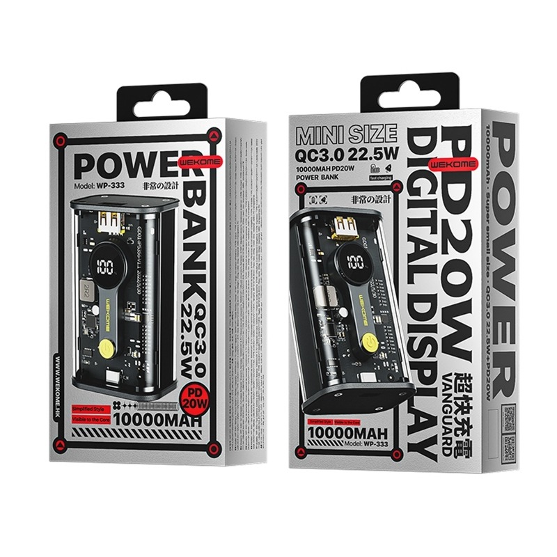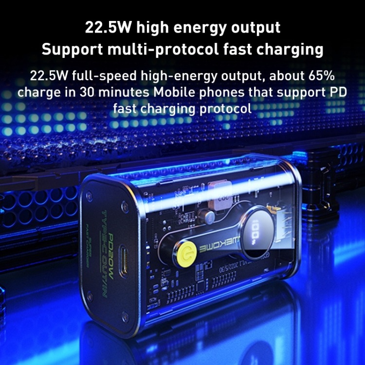 Внешний Аккумулятор (Power Bank) WK WP-333 10000 mAh (Type-C PD 20W + USB QC3.0 22.5W/LCD) Прозрачный