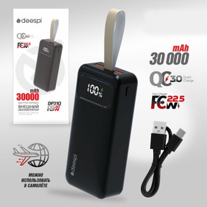 Портативный аккумулятор DEESPI DP31Q 30000 mAh 22.5W+ PD 20W (черный)