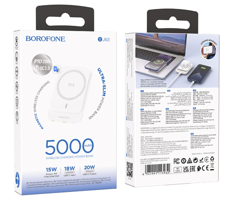 Описание Внешний аккумулятор BOROFONE BJ63 PD 20W MagSafe 5000 mAh (белый)