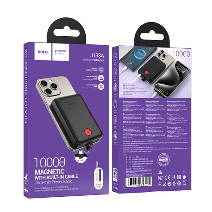 Внешний аккумулятор HOCO J133A 10000 mAh (MageSafe/PD/LED инд.бат) черный