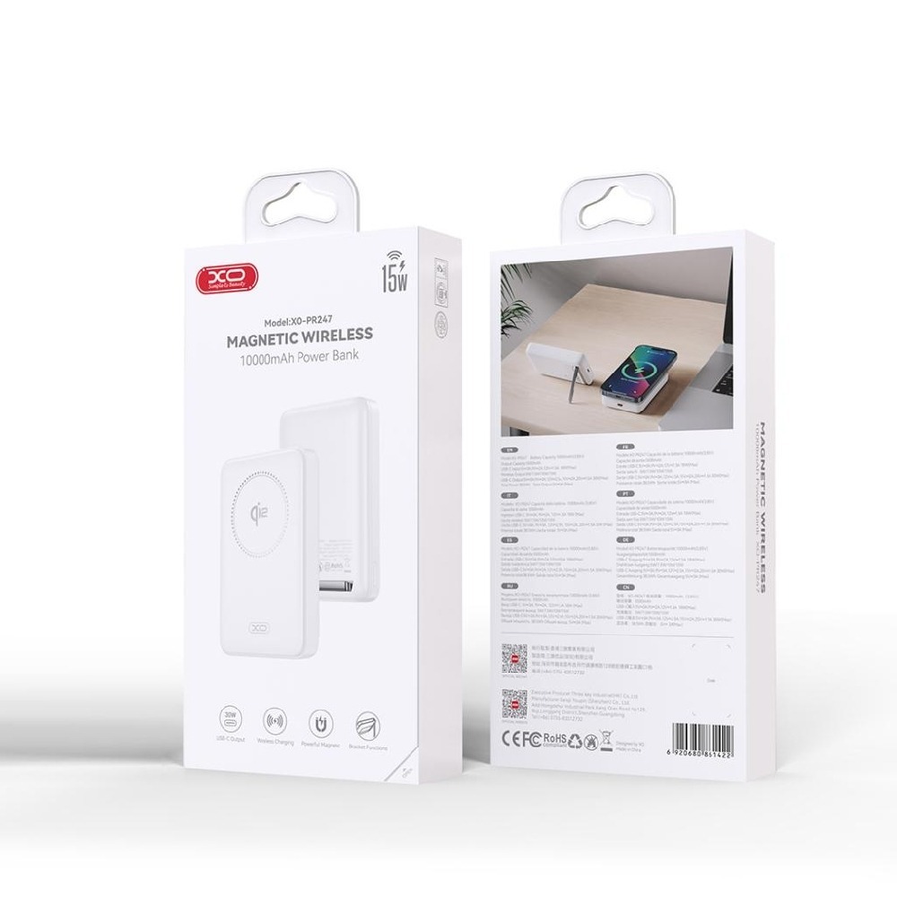 Внешний аккумулятор XO PR247 QI2 беспроводная зарядка, 10000mAh (PD30W, magsafe) белый