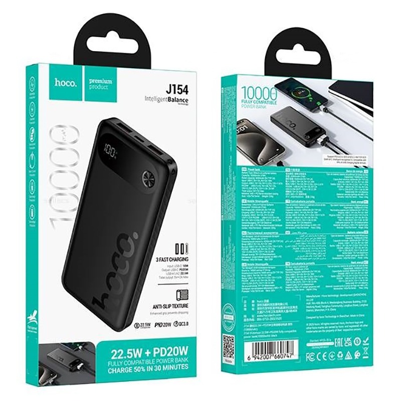 Портативный аккумулятор HOCO J154 10000 mAh PD 20W+22.5W (черный)
