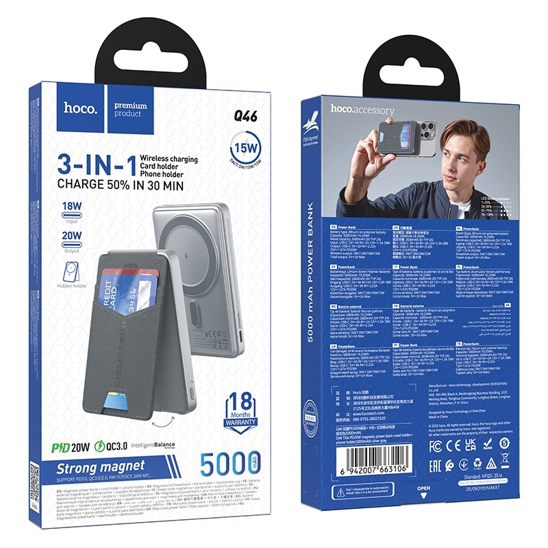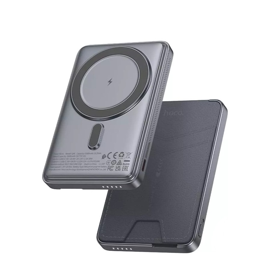 Внешний аккумулятор (Power Bank) Hoco Q46 5000mAh (20W, PD, USB-C, MagSafe 15W, держатель для карт и смартфона) Серый