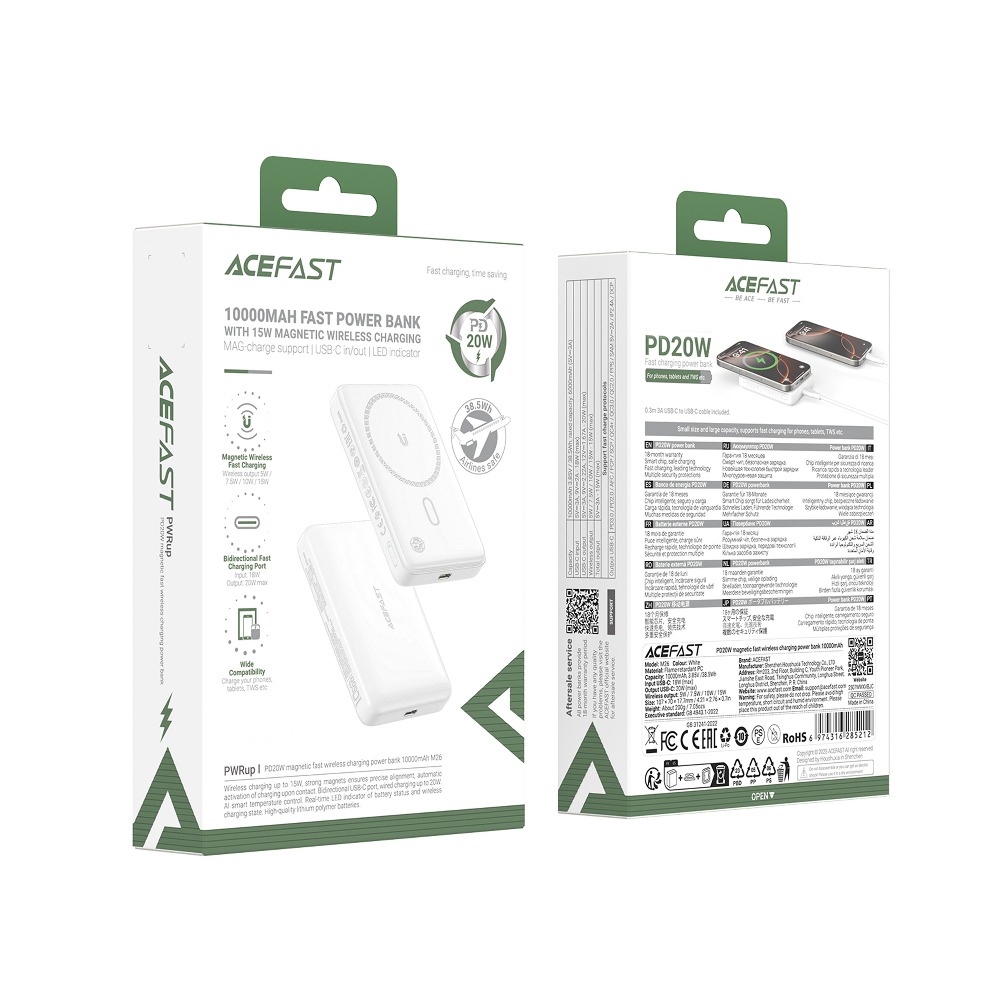 Внешний аккумулятор ACEFAST M25 беспроводная зарядка, 5000mAh (PD20W,magsafe) белый