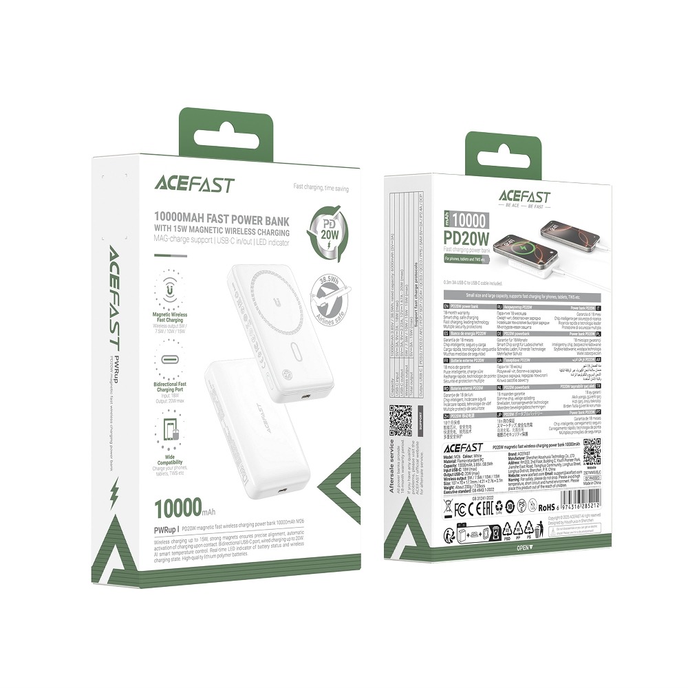 Внешний аккумулятор ACEFAST M26 беспроводная зарядка, 10000mAh (PD20W,magsafe) белый