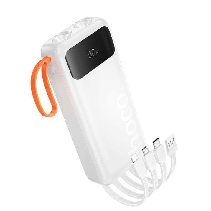 Аккумулятор внешний HOCO J151A Spirit, 20000mAh, пластик, индикатор, кабель Type-C, микро USB, 8 pin, цвет: белый (1/31)