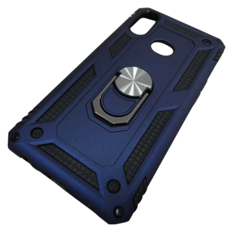 Чехол пластиковый Samsung A10S противоударный с кольцом и магнитом синий*