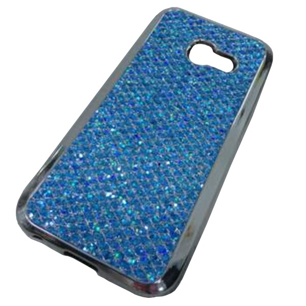 Чехол силиконовый Samsung A3 2017 (A320) с хром контуром и блестками голубой*