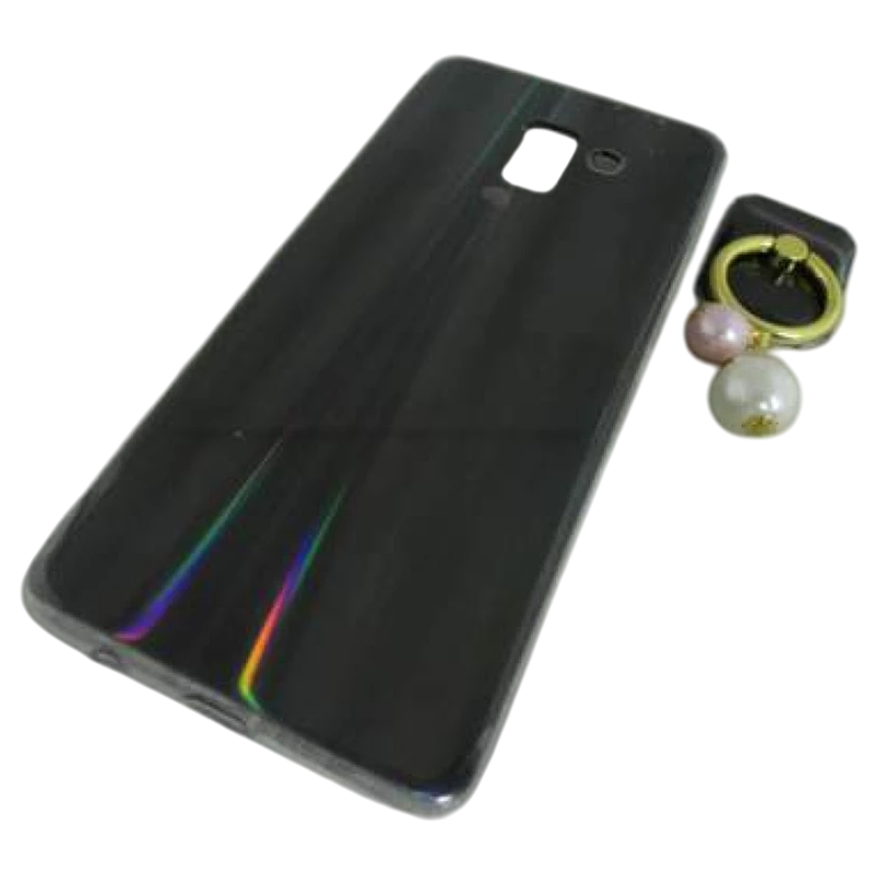 Чехол пластиковый Samsung A8 Plus иллюминация + наклейка кольцо серый*