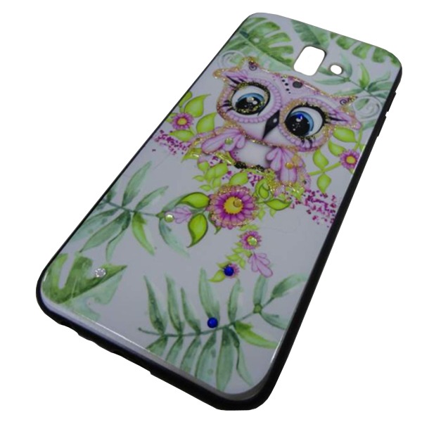 Чехол пластиковый Samsung J6 Plus 2018 с рисунком и стразами (01)*
