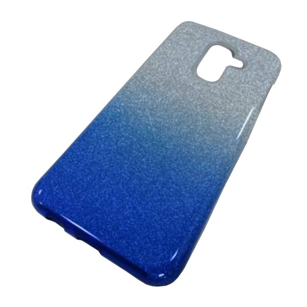 Чехол пластиковый Samsung J8 2018 блестящий серебристо-синий*