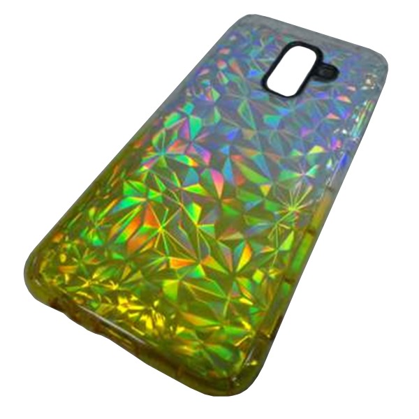 Чехол силиконовый Samsung J8 2018 PRISMA (голограмма двухцветная) бело-желтый