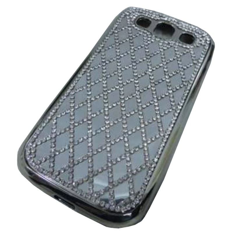 Чехол силиконовый с контуром Samsung S3 (i9300) стразы ромб серебро
