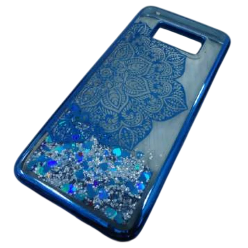 Чехол пластиковый Samsung S8 блестки в воде синий*