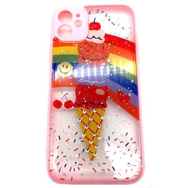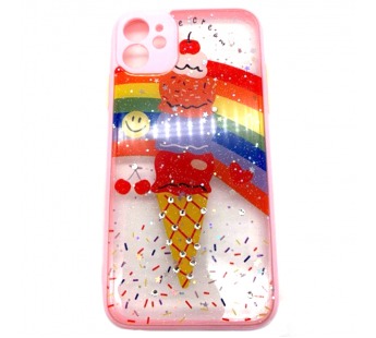 Чехол iPhone 11 Силикон Мороженое стразы Розовый