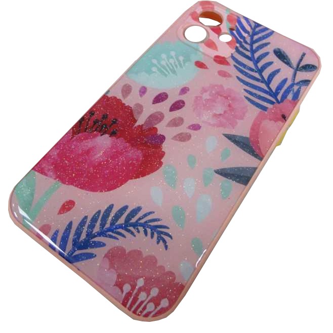 Чехол силикон-пластик iPhone 12/12 Pro (6,1") блестящий с рисунком розовый (01)*