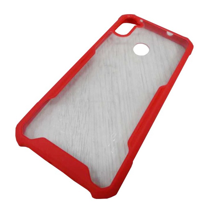 Чехол силикон-пластик Samsung A11/M11 прозрачный с окантовкой красный*