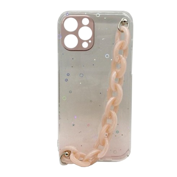 Чехол iPhone 12Pro Max Прозрачный Lux Бусы Розовый