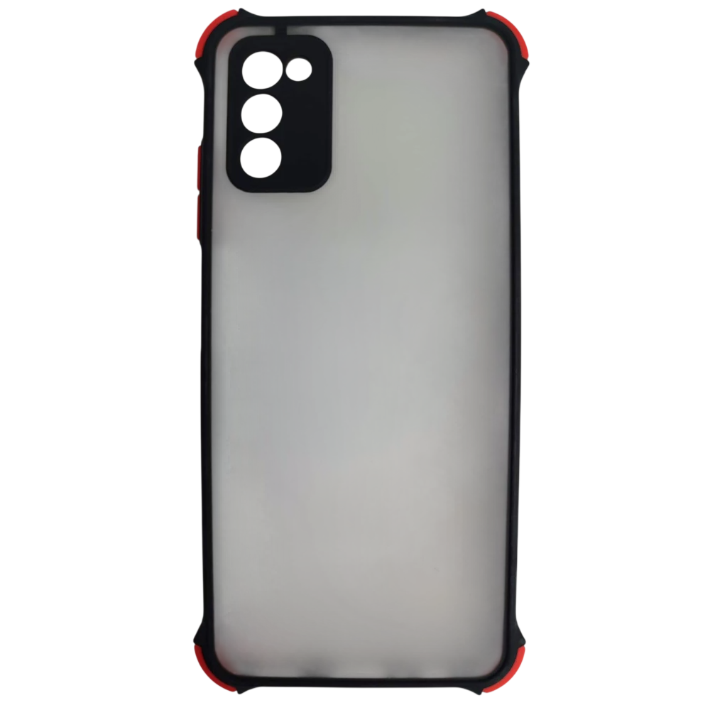 Чехол силикон-пластик Samsung A03s прозрачный с защитой по краям черный/красный*