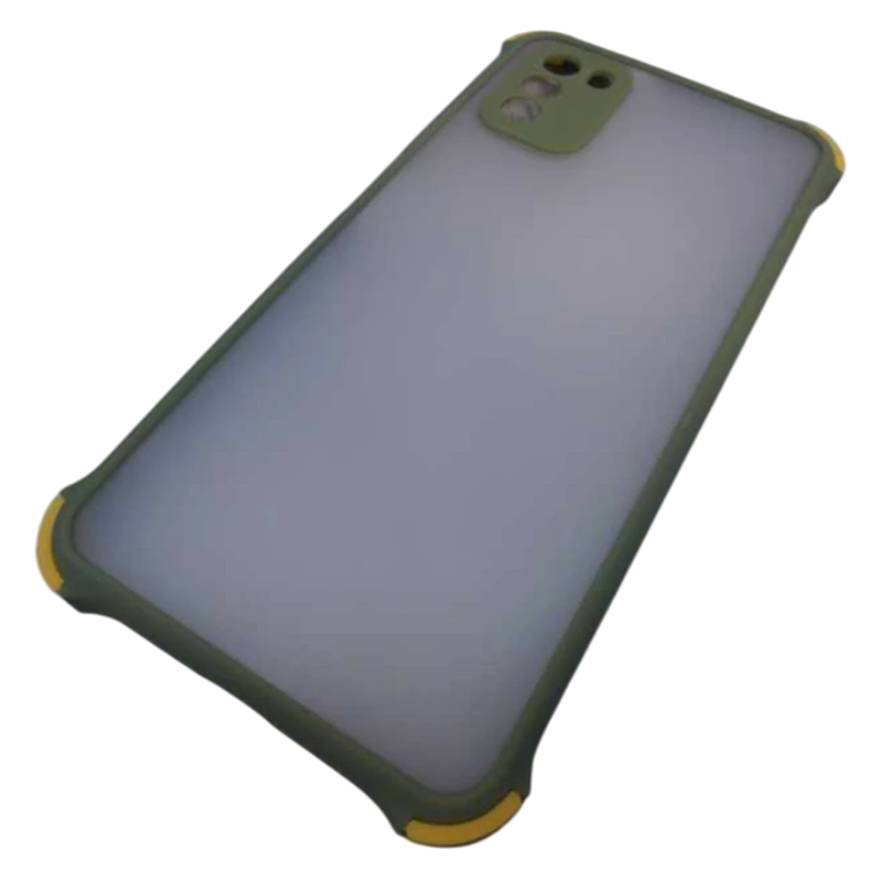 Чехол силикон-пластик Xiaomi Poco M3 прозрачный с защитой по краям хаки/оранжевый*