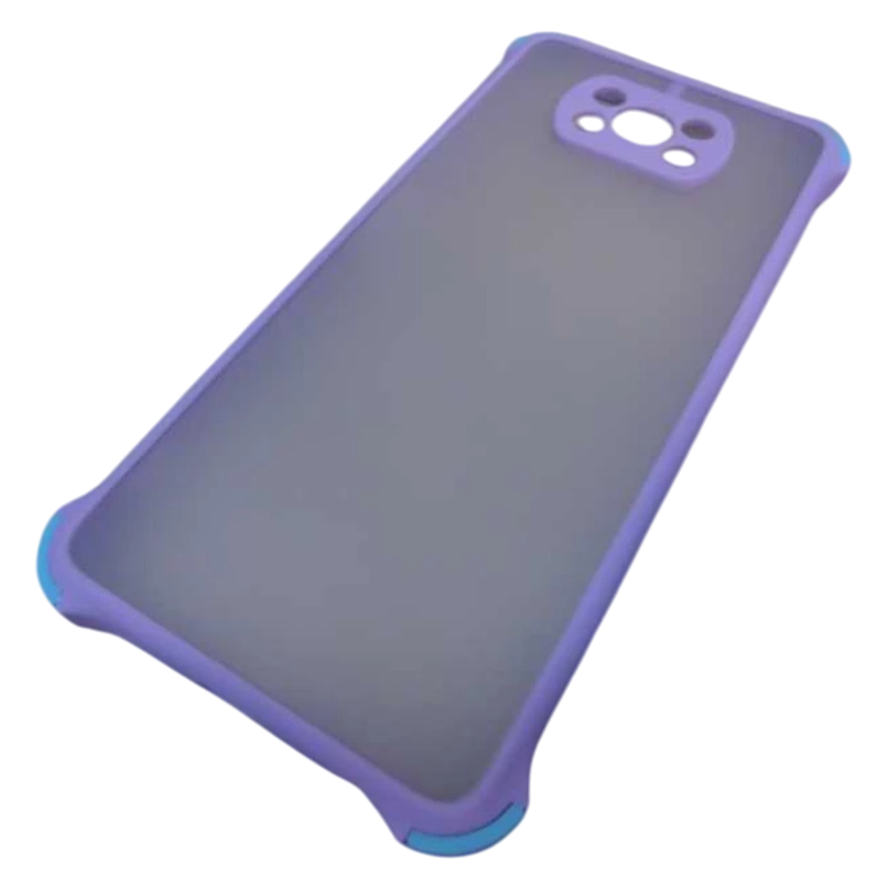 Чехол силикон-пластик Xiaomi Poco X3 прозрачный с защитой по краям сиреневый/голубой*