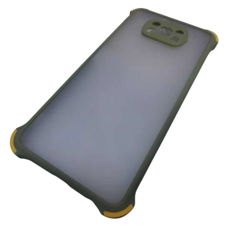 Чехол силикон-пластик Xiaomi Poco X3 прозрачный с защитой по краям хаки/оранжевый*