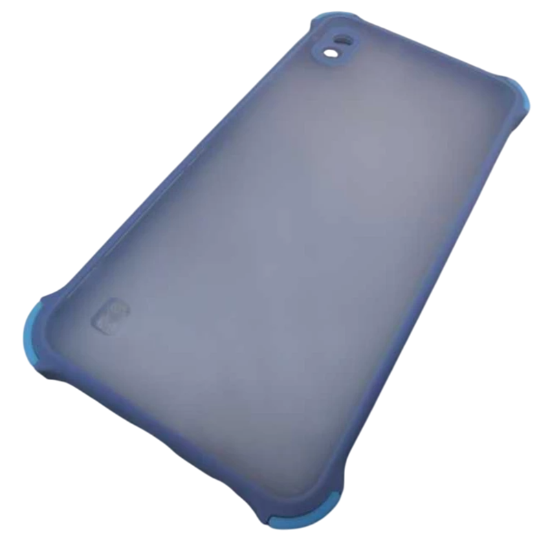 Чехол силикон-пластик Samsung A10 прозрачный с защитой по краям серый/голубой*