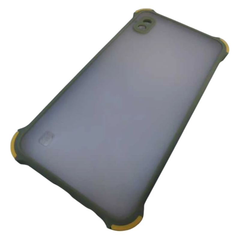 Чехол силикон-пластик Samsung A10 прозрачный с защитой по краям хаки/оранжевый*