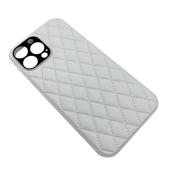 Чехол iPhone 13 Pro Max Кожа Premium Ромб Белый
