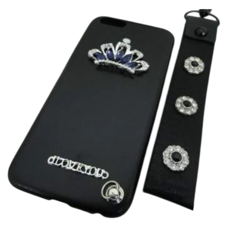 Чехол силиконовый iPhone 6 корона со стразами и шнурком черный*
