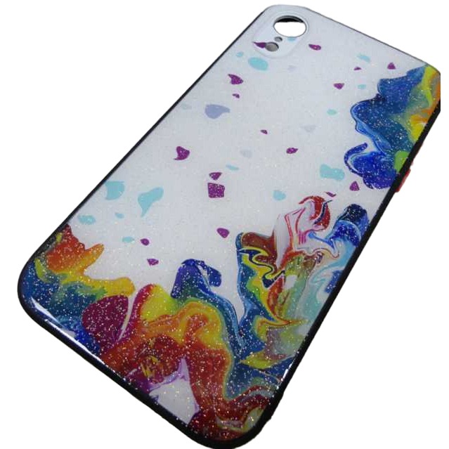 Чехол силикон-пластик iPhone XR блестящий с рисунком черный (02)*