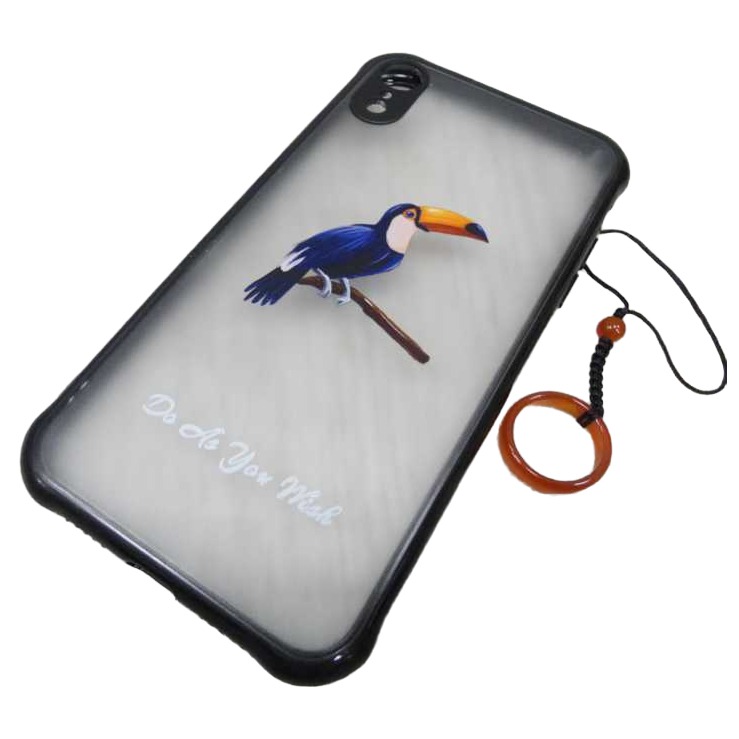 Чехол силикон-пластик iPhone XR с рисунком + кольцо черный*