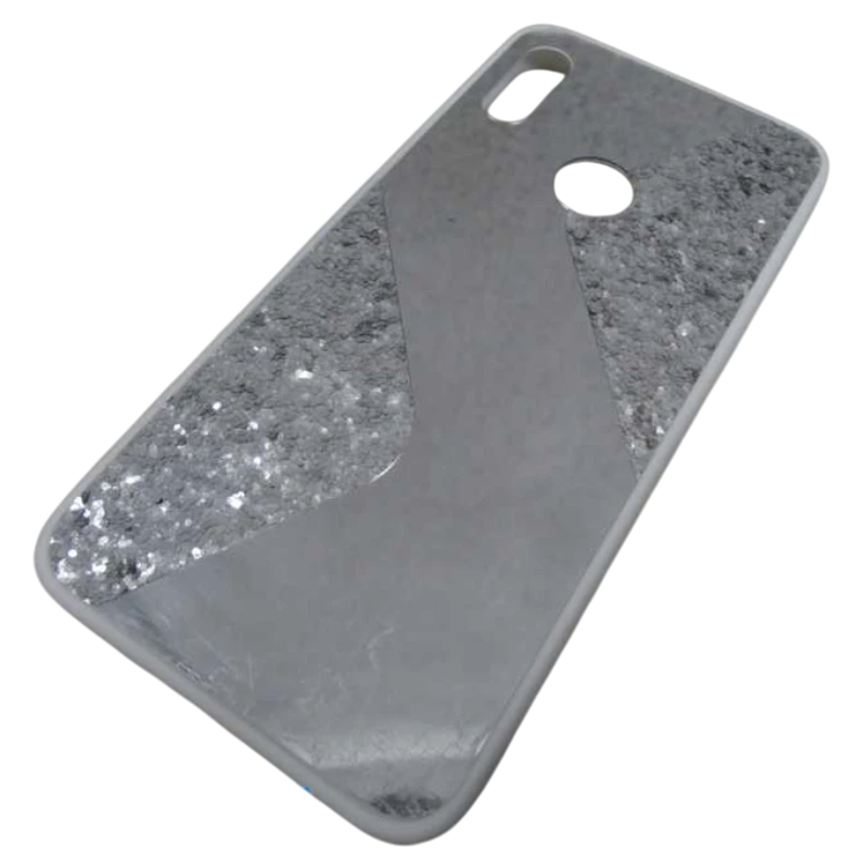 Чехол силиконовый Huawei Honor 8A с блестками и зеркалом белый*