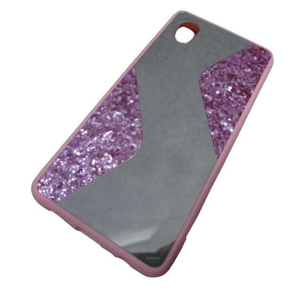 Чехол силиконовый Samsung A01 Core с блестками и зеркалом розовый*