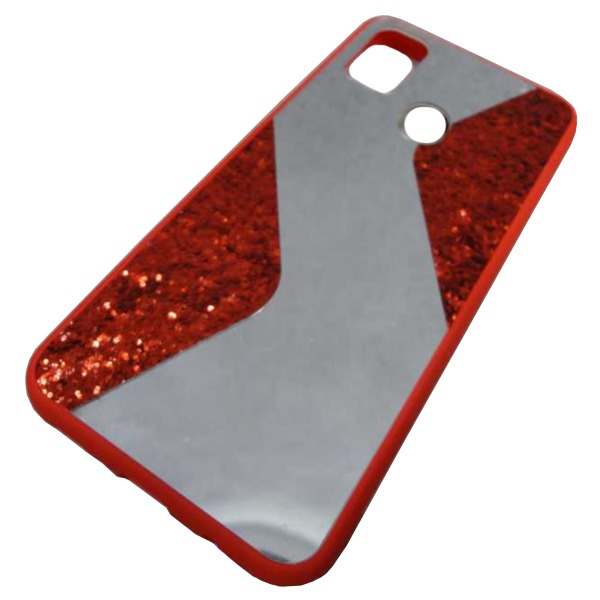 Чехол силиконовый Samsung M21 с блестками и зеркалом красный*