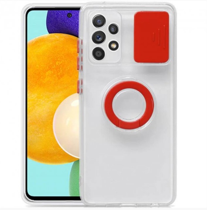 Чехол силиконовый Samsung A72 прозрачный с кольцом и защитой на камеру красный*