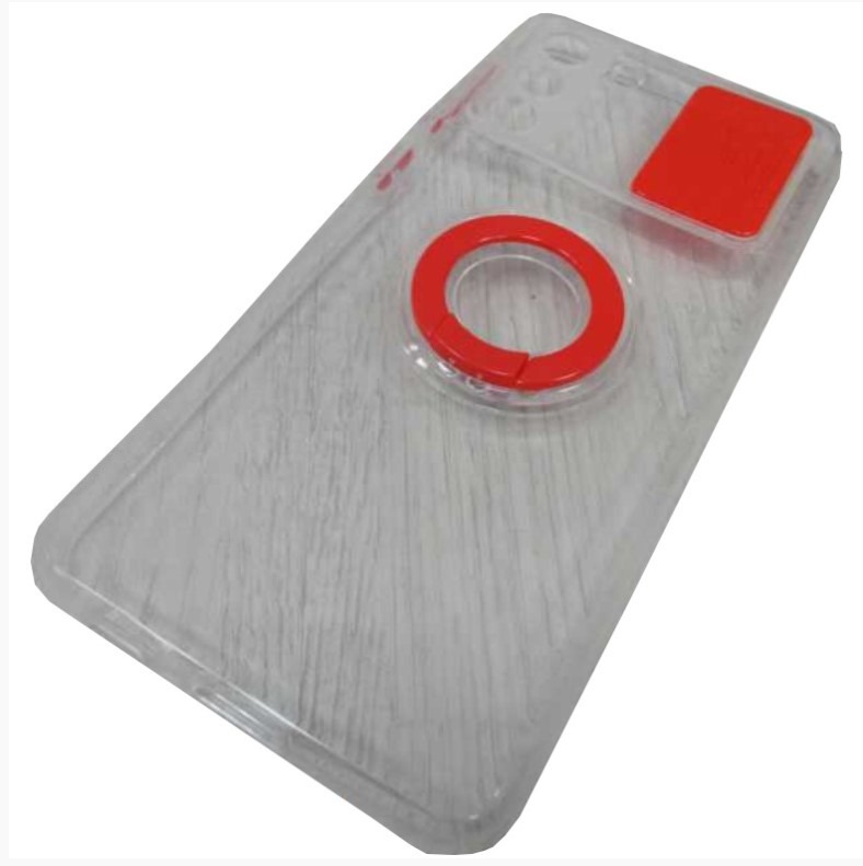 Чехол силиконовый Samsung S21 Plus прозрачный с кольцом и защитой на камеру красный*