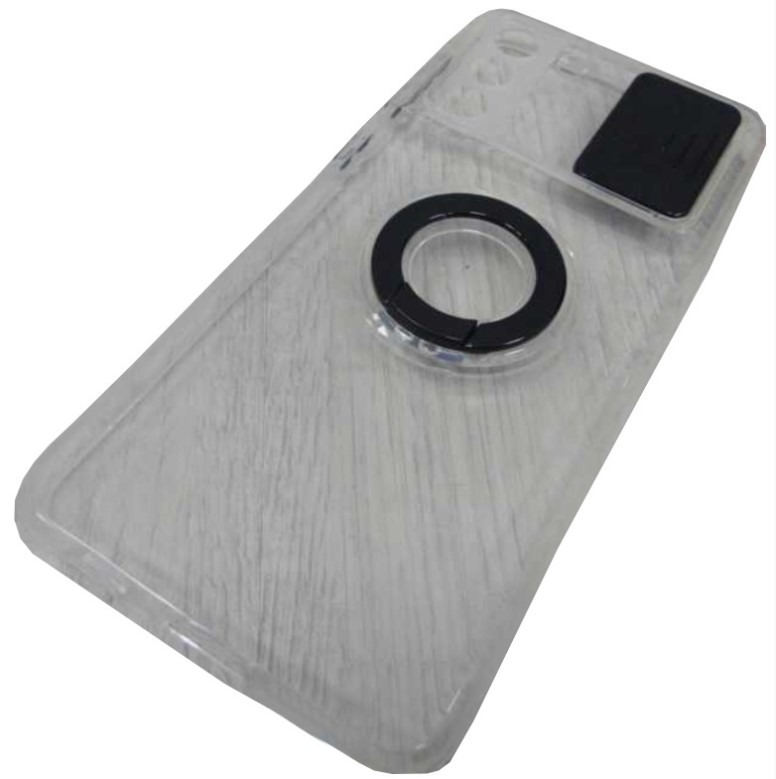 Чехол силиконовый Samsung S21 Plus прозрачный с кольцом и защитой на камеру черный*