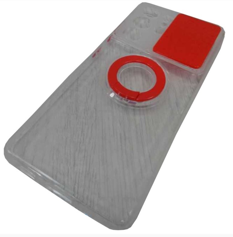 Чехол силиконовый Samsung S21 Ultra прозрачный с кольцом и защитой на камеру красный*