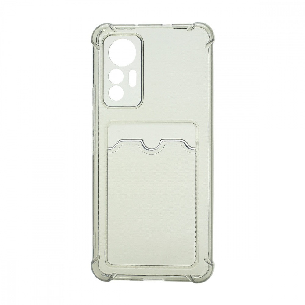 Чехол с кармашком противоударный для Xiaomi 12 Lite прозрачный (009) черный