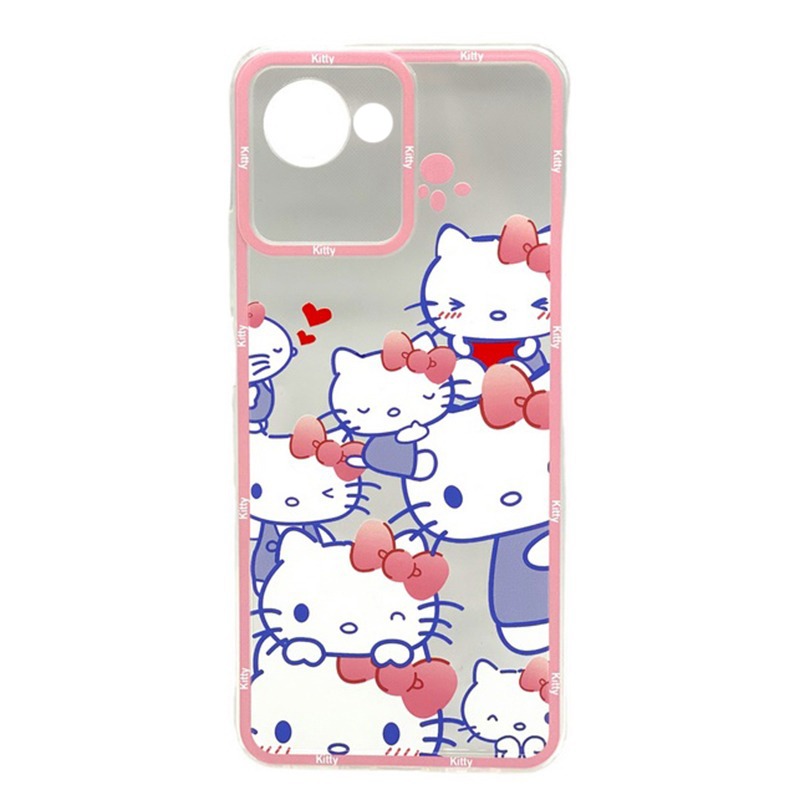 Чехол Realme C30 (2022) (Full Camera/Pink Cats) Силикон Прозрачный 1.5mm