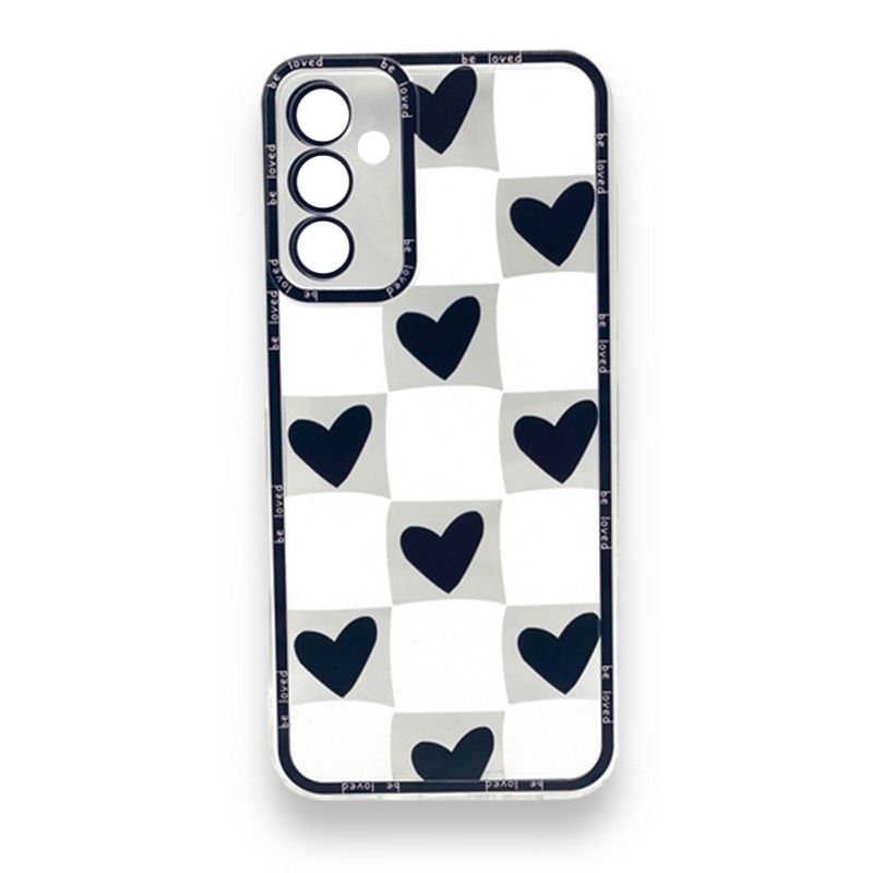 Чехол Samsung A14 4G/Samsung A14 5G (2023) (Full Camera/Сердце Черный) Силикон Прозрачный 1.5mm