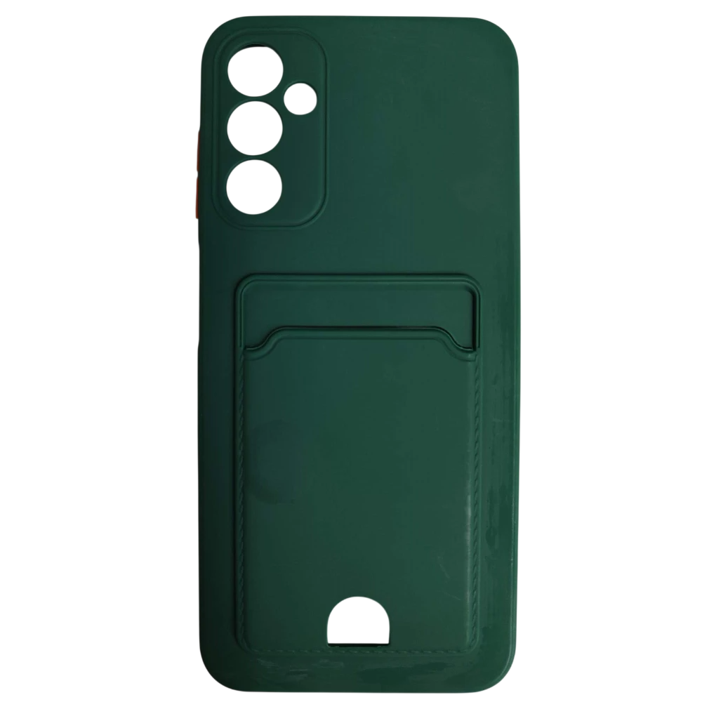 Чехол силиконовый Samsung A14 матовый цветной с визитницей темно-зеленый