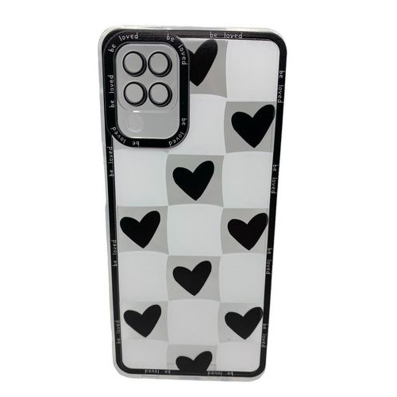 Чехол Samsung A12/M12 (2020) (Full Camera/Сердце Черный) Силикон Прозрачный 1.5mm