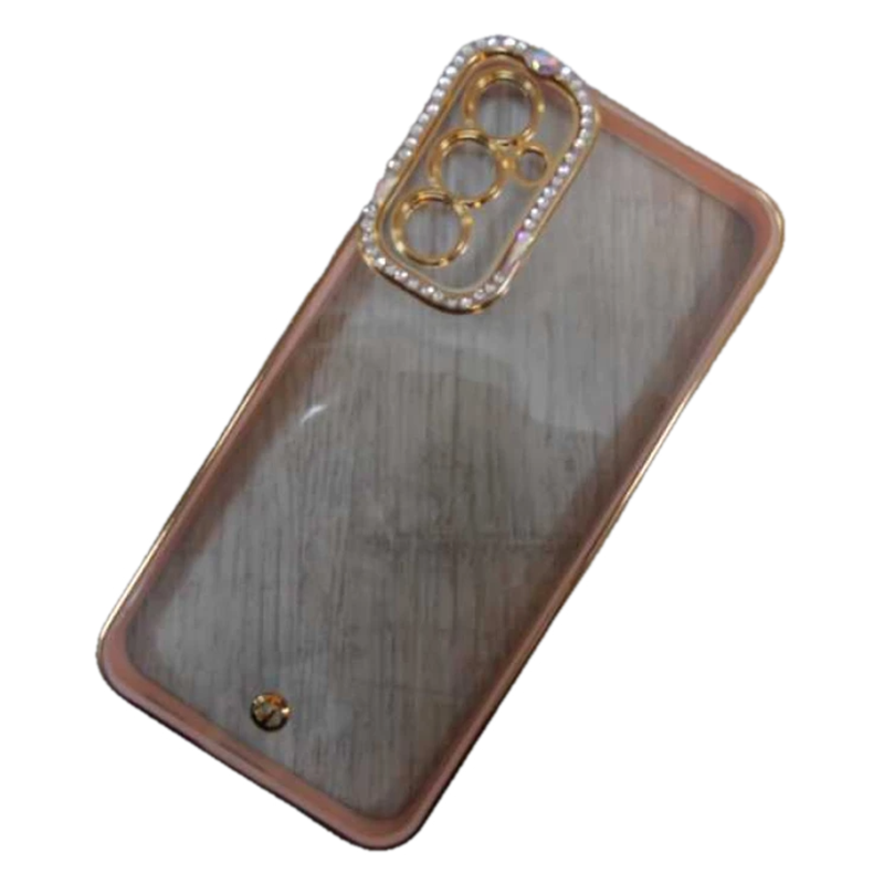 Чехол силиконовый Samsung A34 ободок со стразами и защитой камеры розовый