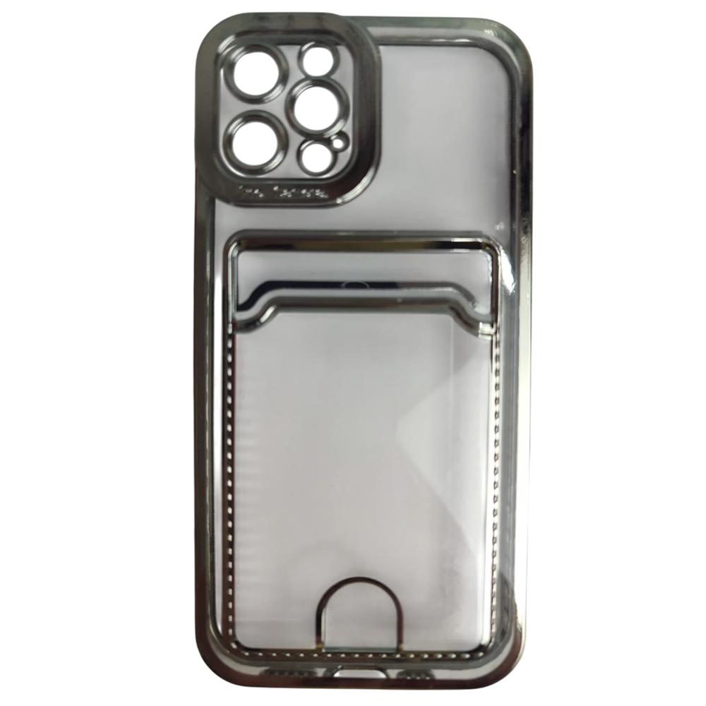 Чехол силиконовый iPhone 12 Pro цветная окантовка с визитницей и защитой камеры серебро
