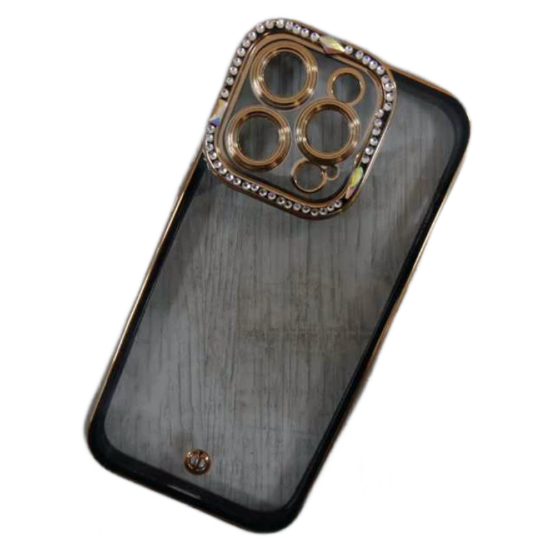 Чехол силиконовый iPhone 14 Pro ободок со стразами и защитой камеры черный