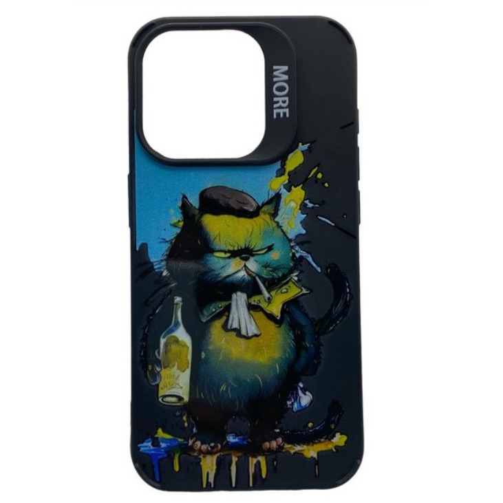 Чехол iPhone 14 Pro Max Креатив Кот с бутылкой Черный