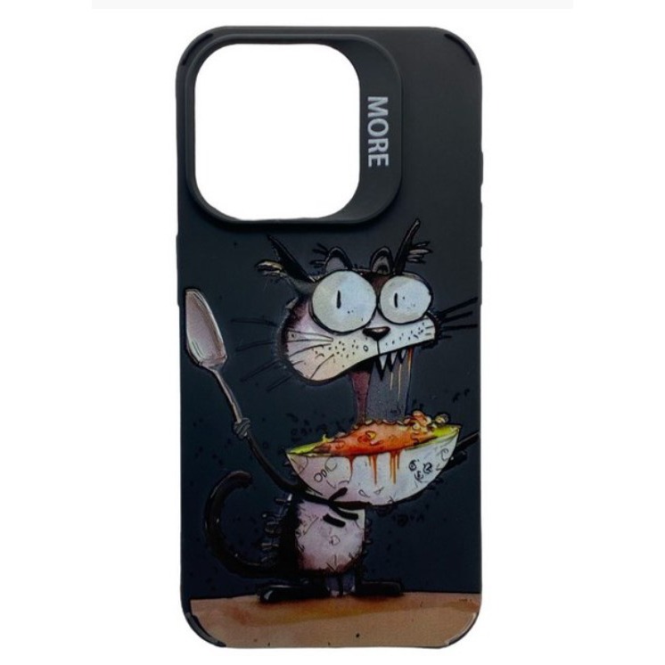 Чехол iPhone 15 Pro Max Креатив Кот с ложкой Черный