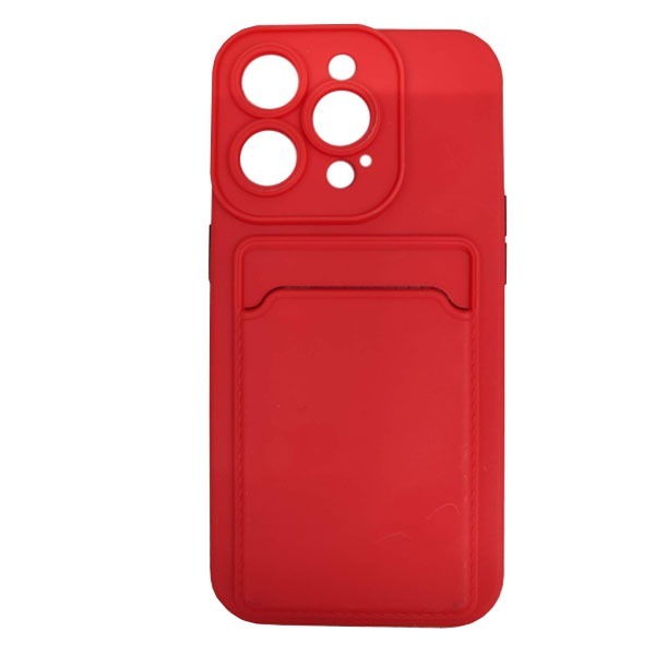 Чехол силиконовый iPhone 14 Pro матовый цветной с визитницей красный